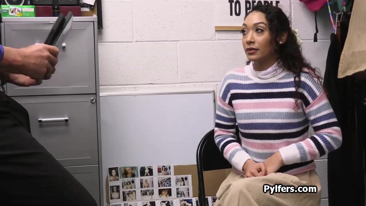 What a curly hottie has landed in Mr. Robs office. She is a petite Latina beauty who wanted to rent some adult DVDs for free. Its time to fuck her!